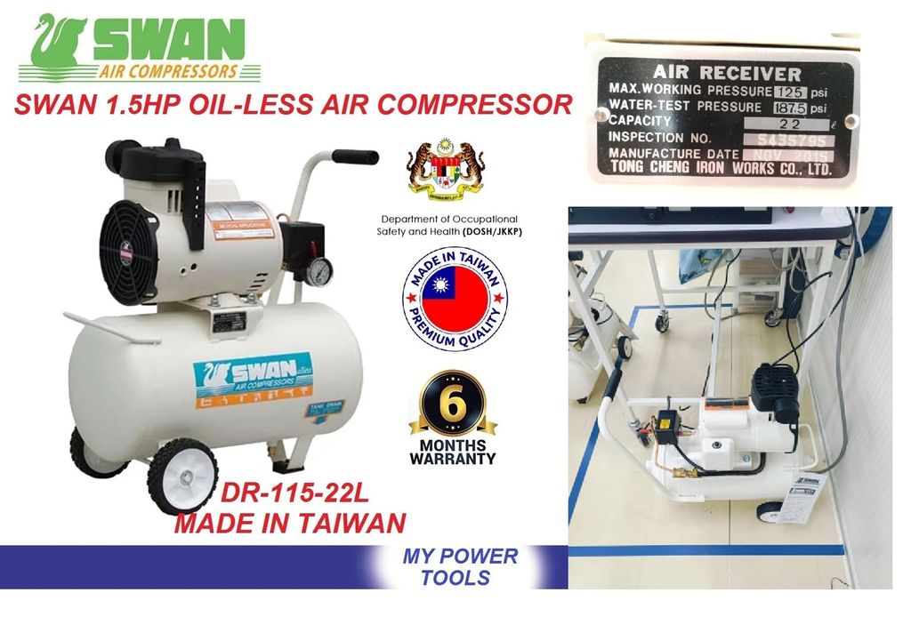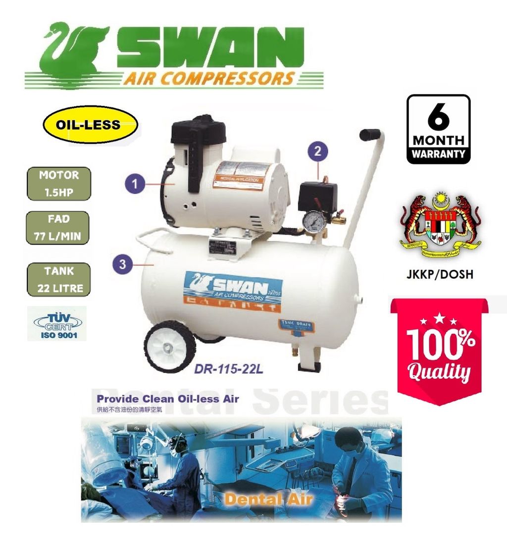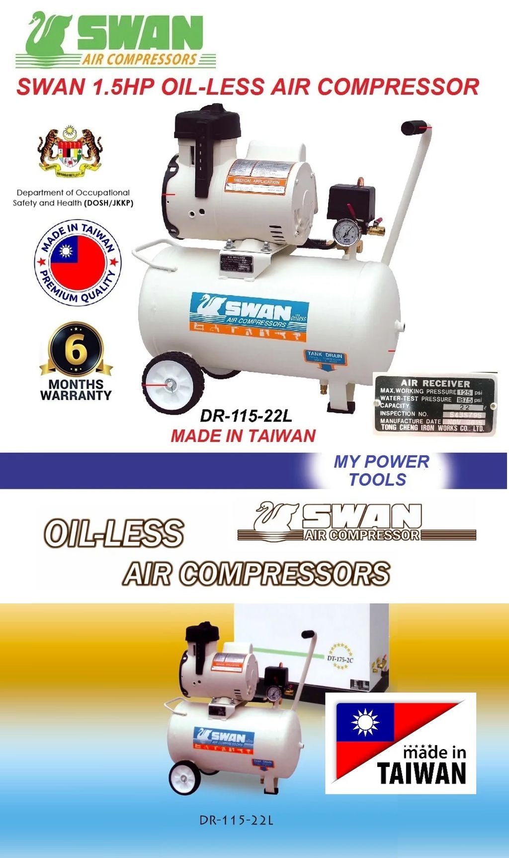 Swan DR 1.5Hp 22Liter Silent Oil-Free Air Compressor JKKP / DOSH..