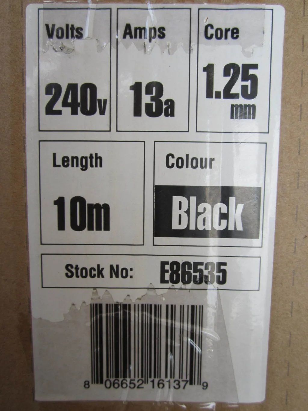 Cable type 1.25mm, 3 Core H05-VVF BS 6500 VDE