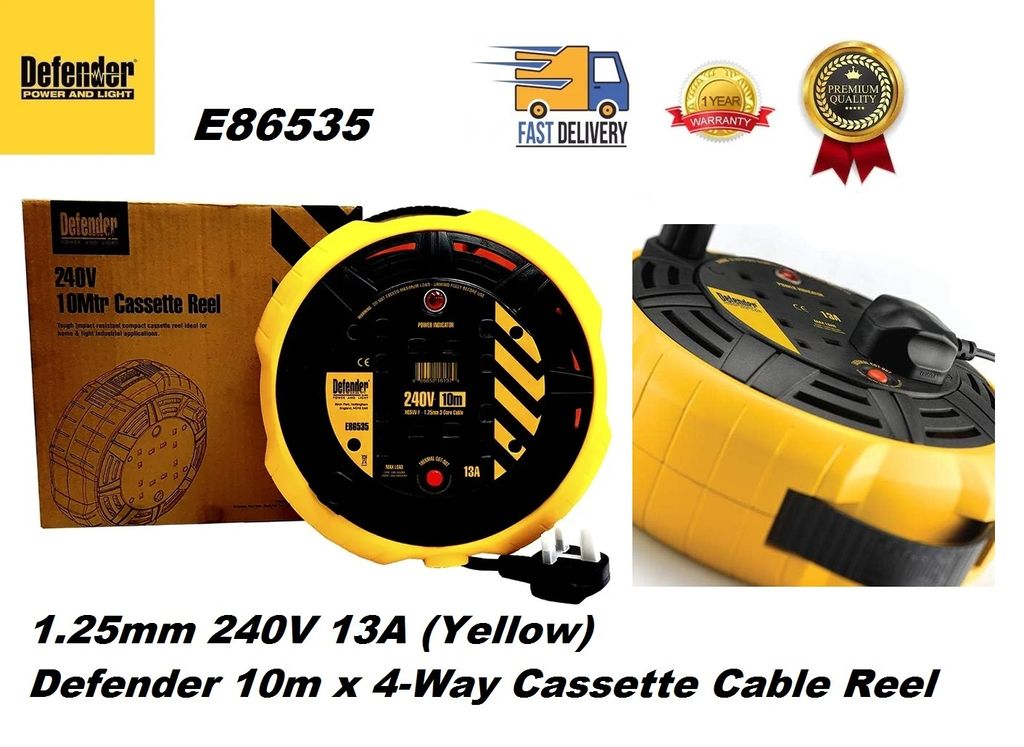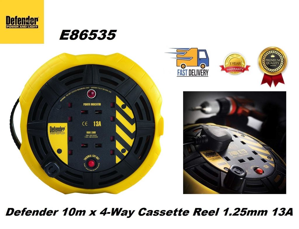 Defender 10mtr x 4-Way Impact Resistant Cassette Reel 240V 13A..