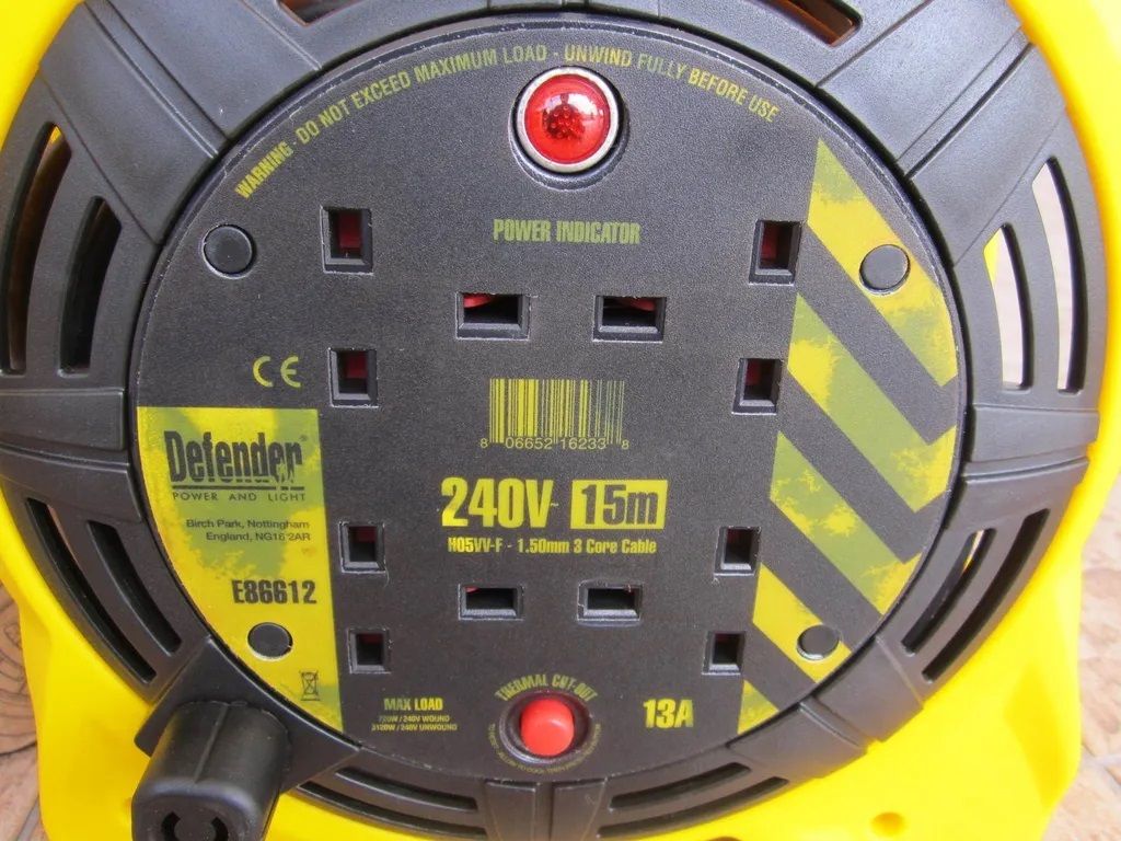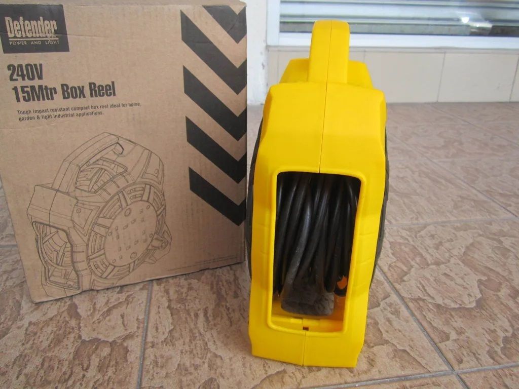 Defender E86612 (4-Socket) 240V 13A Compact Box Cable Reel 15-meter..