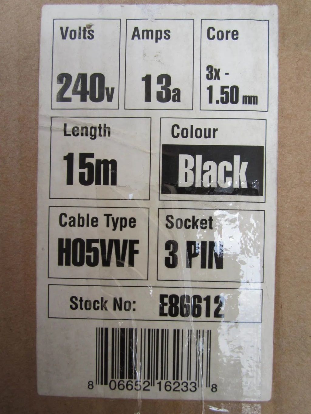 Cable type 1.5mm, 3 Core H05-VVF BS 6500 VDE