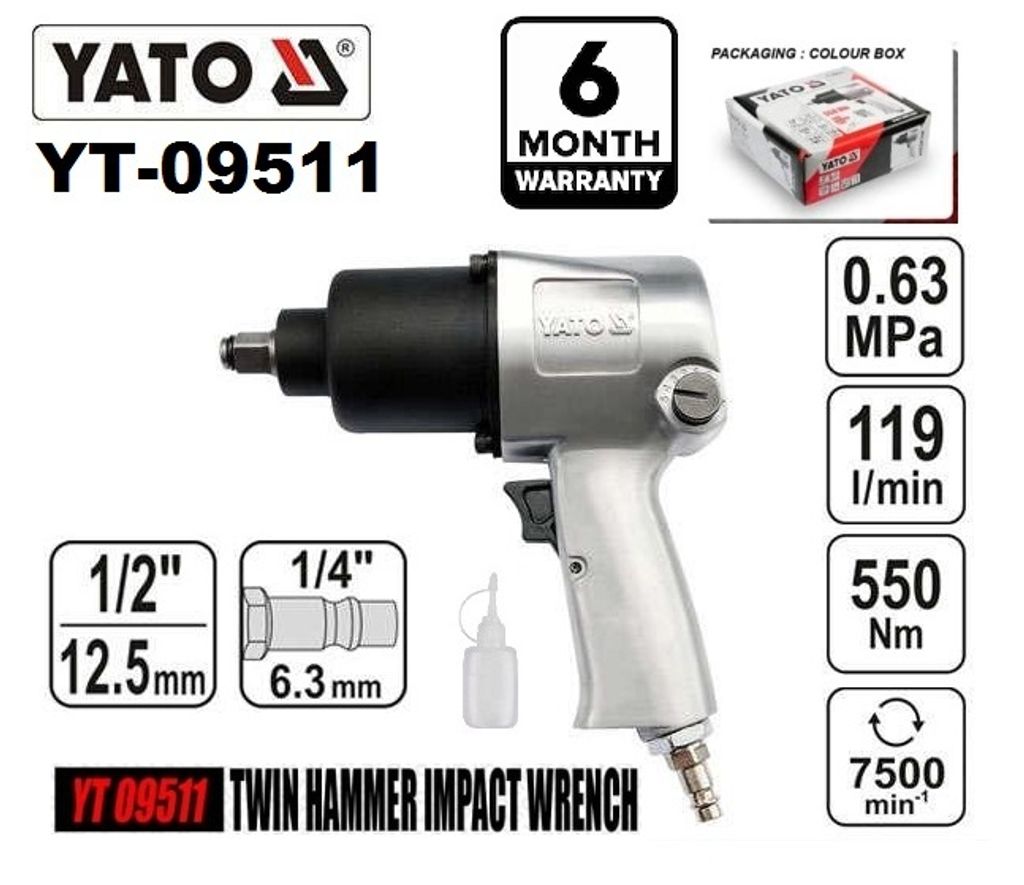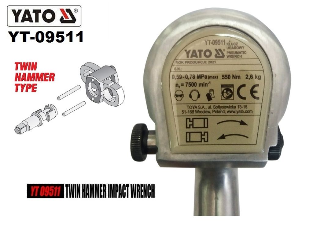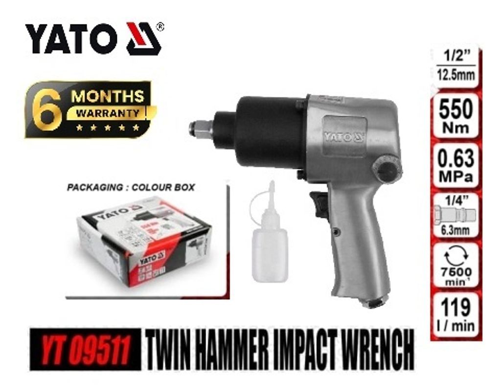 Yato YT-09511 (1/2-in) Dr. Twin-Hammer Air Impact Wrench 550Nm Torque..