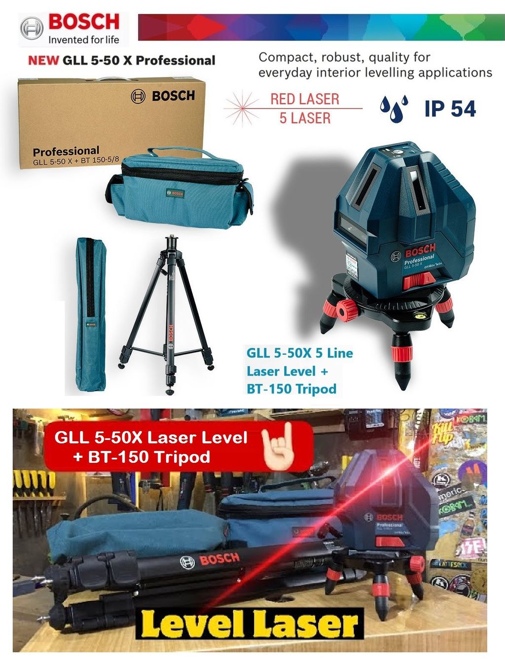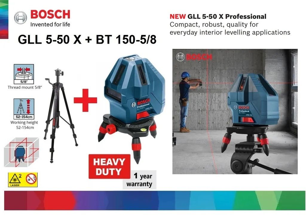 Bosch GLL 5-50 X Self-Leveling Line Laser with BT 150 Tripod..