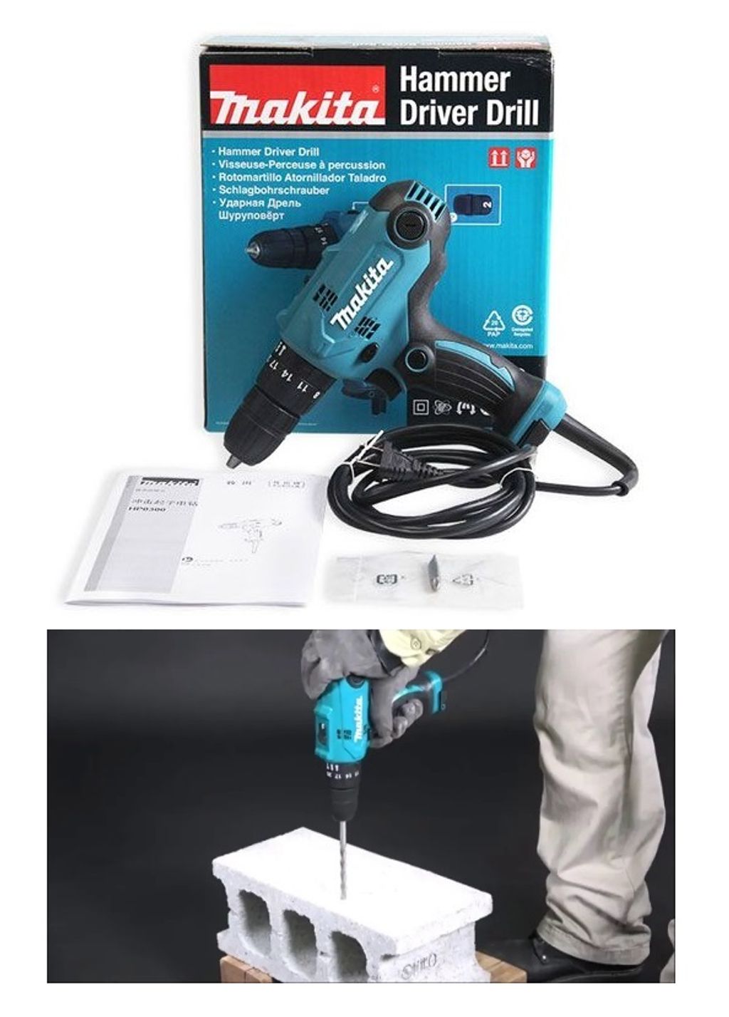 Makita HP 3/8-inch / 10mm Compact Hammer Driver Drill 320W