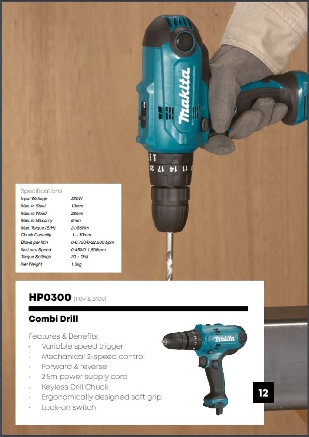 • Reliable 10 mm double sleeve keyless drill chuck for easy bit installation and removal