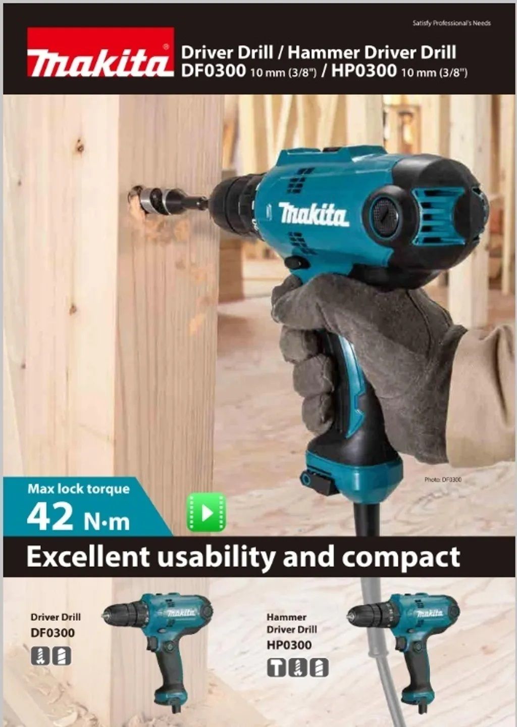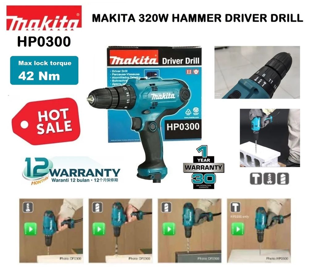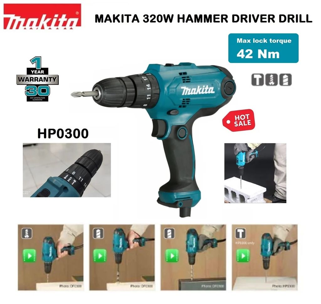 Makita HP 3/8-inch / 10mm Compact Hammer Driver Drill 320W..