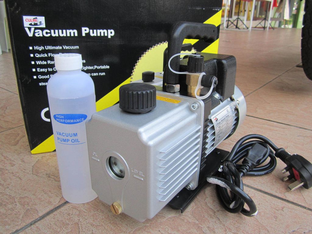 This two stage vacuum pump is CE approved and comes ready to operate. With an easy to carry design, it is smaller, lighter and more portable. This high performance, powerful pump provides free air displacement of 3.5CFM@50Hz and 4.0CFM@60Hz and runs steadily for a long period of time. Comes complete with initial supply of high vacuum pump oil.