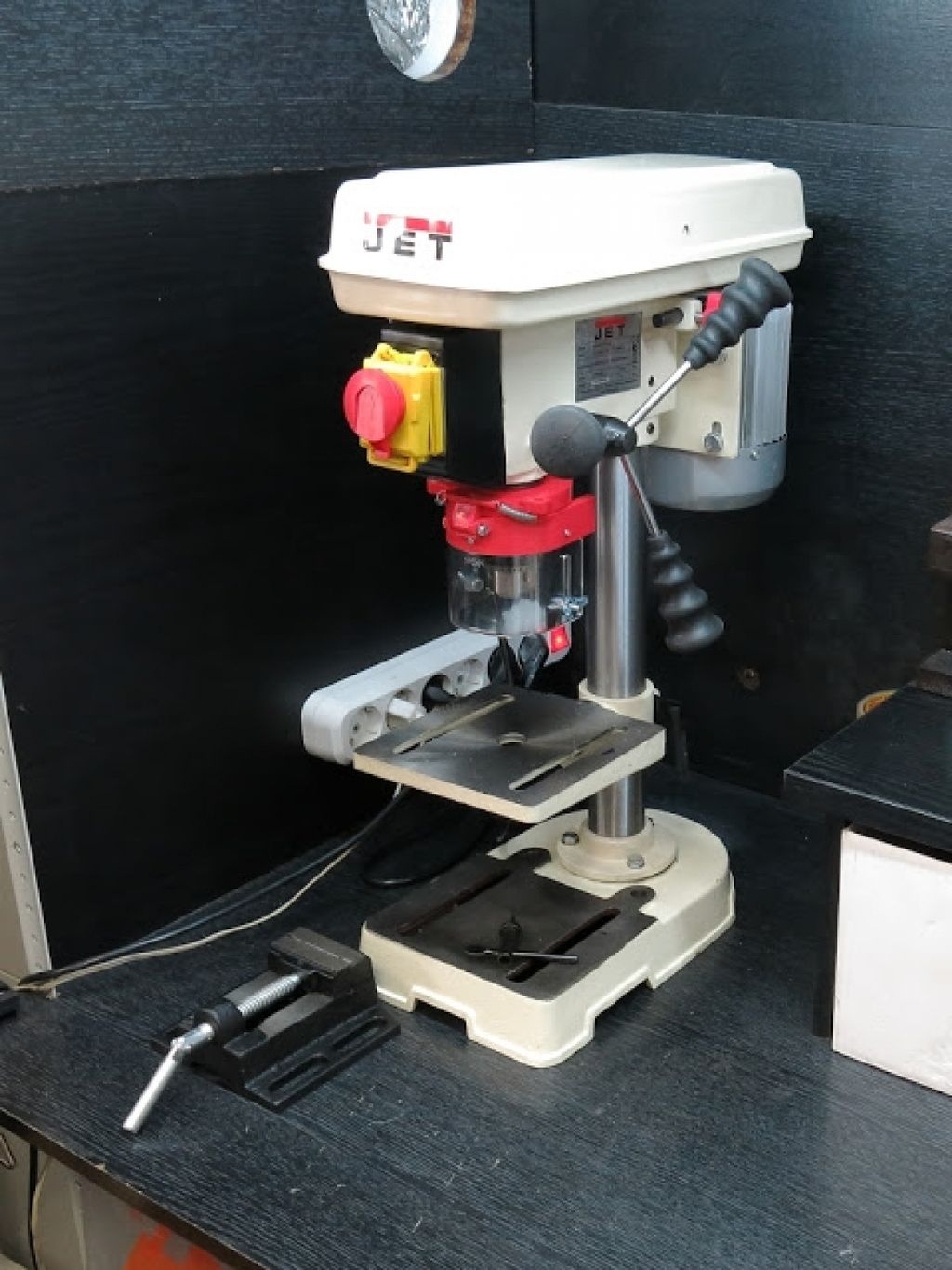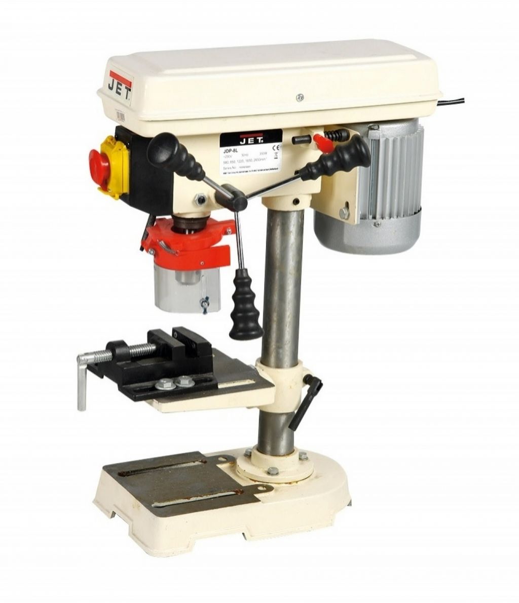 JDP-8L Jet Professional - drilling machine, designed for the amateur working with wood and other materials. This is the most compact model in the line of Jet, but despite that, it has all the functions and systems inherent to professional peers. There is depth stop and linear millimeter scale to control the movement of the spindle quill, adjustable tilt and height of the desk, made ??of cast iron. When working with dimensional parts can be removed at the same time perform as a support base of the machine, the surface of which is treated as well and has slots for attaching the grip (included).