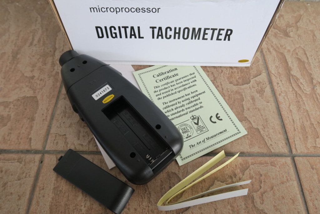 Lutron hand-held tachometer with quartz crystal micro-controller and optical (non-contact) sensor, which measures a wide speed range to a high degree of accuracy. Large LCD display with a choice of display units, minimum/maximum and memory functions.