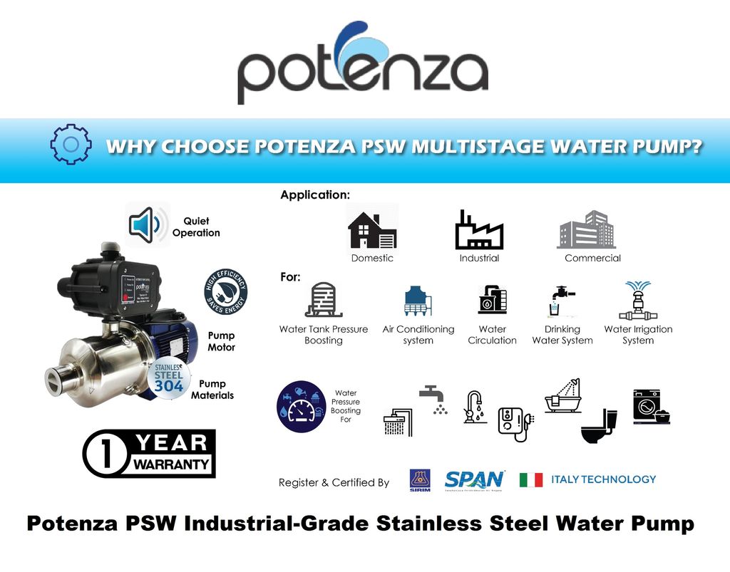 Potenza PSW 370W / 0.5Hp PC-Auto Multi-Stage S/Steel Booster Pump..