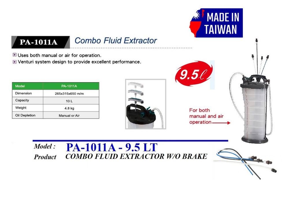 Tuta PA-1011A (9.5-Litre) Combo Manual / Air Fluid Extractor (Taiwan Made)