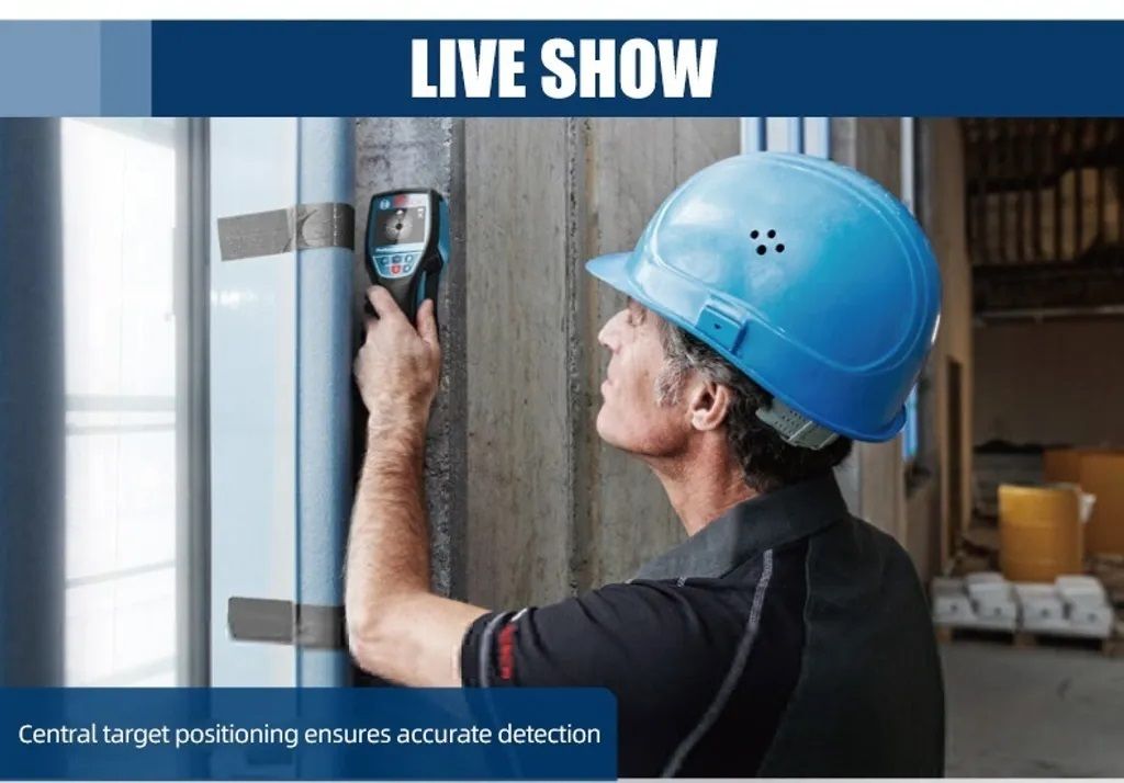 magnetic metals (e.g. iron), non-magnetic metals (e.g. copper), live cables, non-live cables, water-filled plastic pipes, wooden substructures