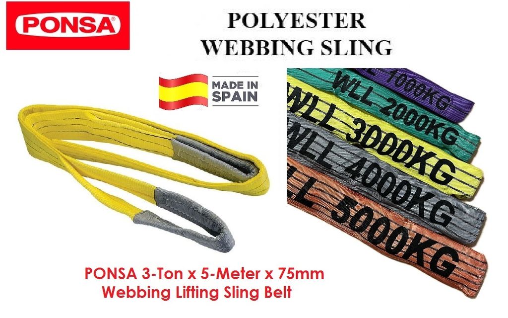 Ponsa Spain Lifting Flat Webbing Slings Belt (Made in Spain)..