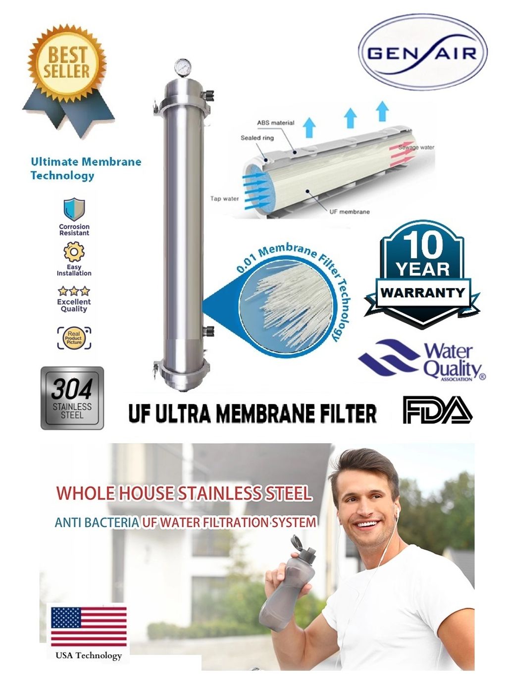 Gen Air i3 Series Outdoor Water Filter is using Ultra Filter Membrane. It could filter up to 99.99% of substances in the water.