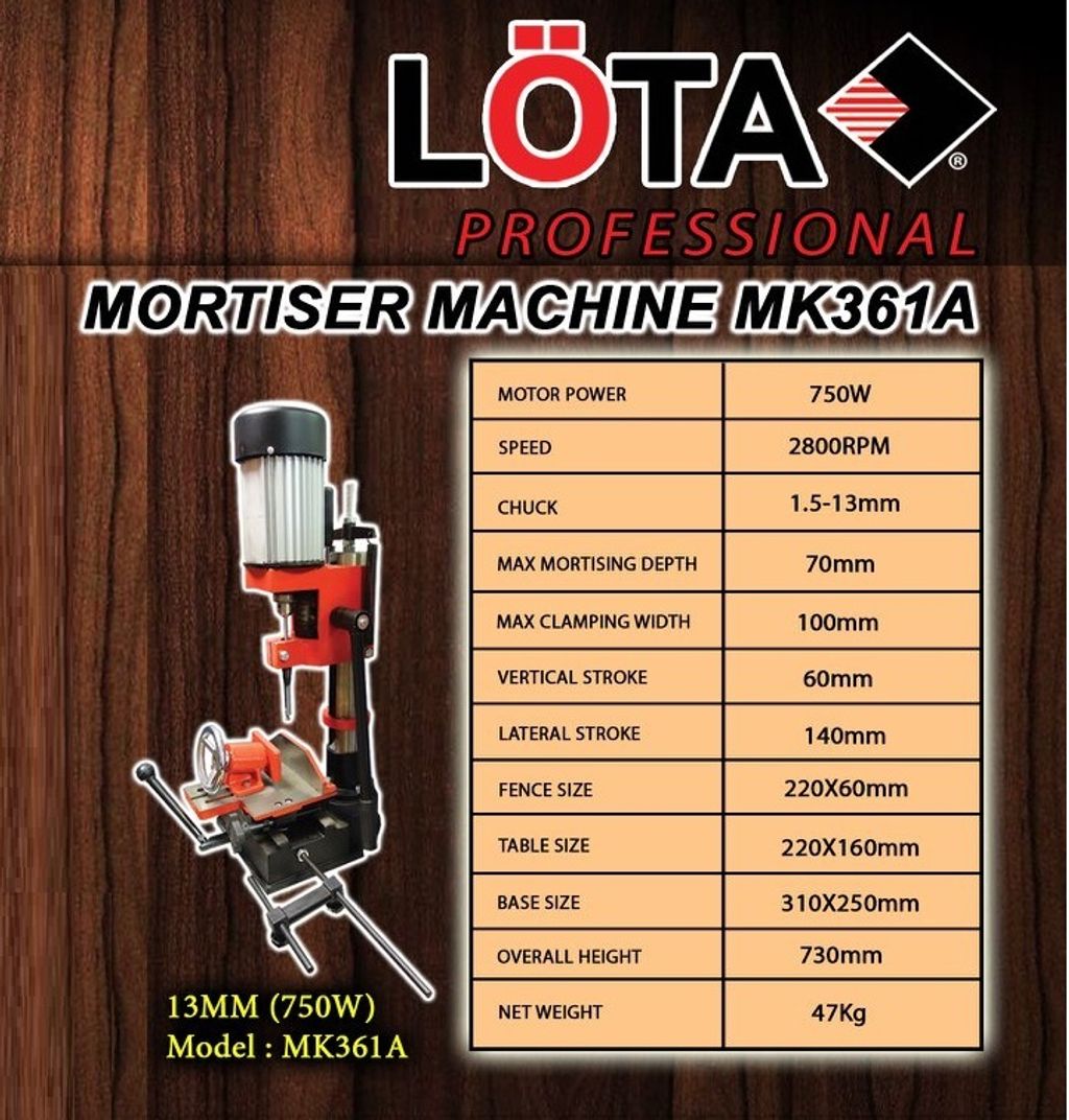 Lota MK361A Wood Mortising Machine Bench Type 1.0Hp / 750W